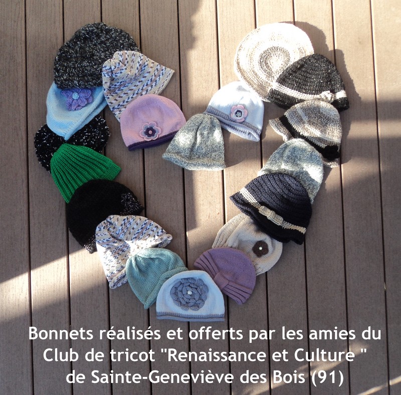 3. MERCI ma Belle ROSALIE, et MERCI A TOUTES D’Y PARTICIPER…Perso je n’ai pas cette cochonnerie,,, mais je pense à celles autour de moi qui l’ont et à toutes celles que je ne connais pas, qui sont fatiguées et n’ont même plus la force de tricoter, pour protéger leur joli crâne tout lisse,,, perso j’en ai fait 60 mais j’ai dû m’arrêter car mes épaules et mon dos ont dit stop,, chacune ses petites misères,,,alors pensez avec vos fins de pelotes à faire des petits bonnets, ça videra vos placards hiii c’est ce qui s’appelle joindre l’utile à l’agréable,,, bisous à toutes