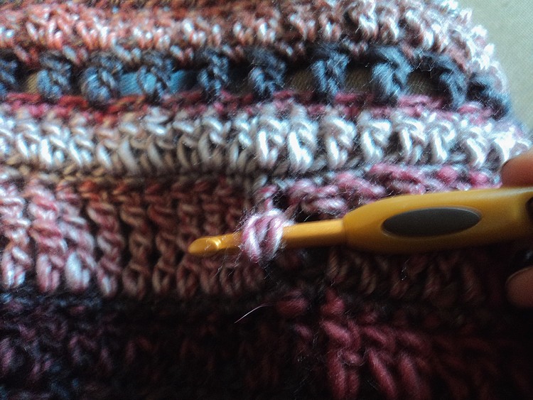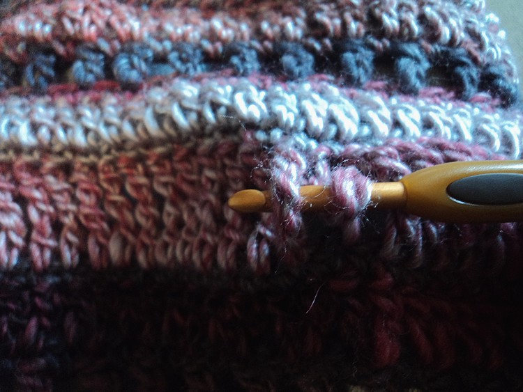 Bordure sur les 2 côtés : 1 rang de point d’écrevisse, qu’on peut remplacer par 1 rang de mailles serrées si on ne sait pas faire ce point.