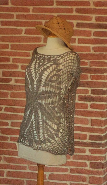 Mon top réalisé avec un crochet n° 3 est un 40/42.