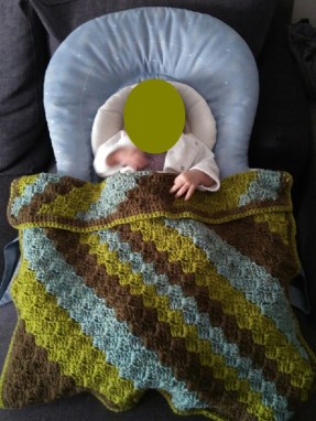Il s’agit de petites couvertures pour bébé au crochet en point de « C 2 C »( dites citouci^^), et cela veut dire « corner to corner », c’est à dire du coin au coin!^^