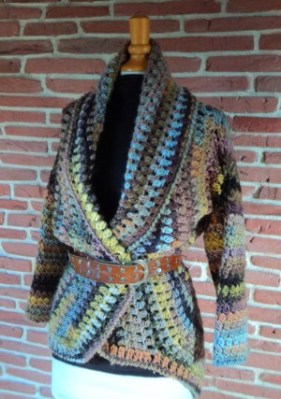 Matériel nécessaire : 2 lots de laine Vivid Wool pour un gilet qui ira du 38 au 42 (sans ceinture, j’ai eu juste assez de laine pour finir le gilet). Pour d’autres tailles, prévoyez 3 lots, voir tout en bas des explications.