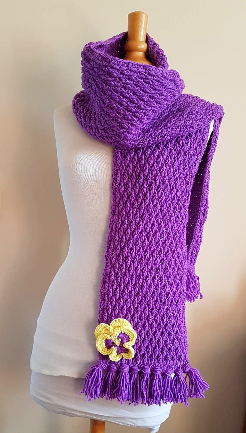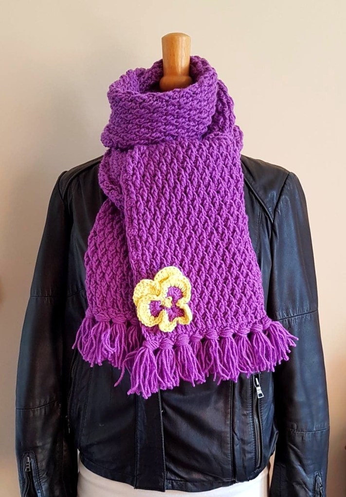 quelle merveilleuse écharpe, au joli point, qui ressemble un peu comme du tissage, effet relief,très joli rendu, pour une écharpe,avec ce point