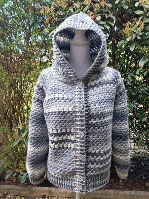 Cette belle veste à capuche est réalisée avec un beau point en relief